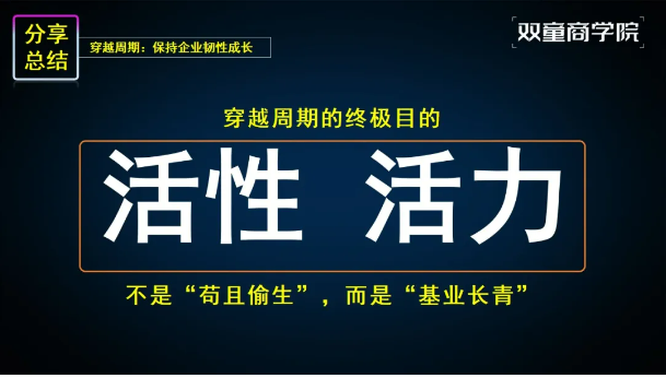 但是,如果已經(jīng)意識(shí)到周期,卻無(wú)動(dòng)于衷的話,其穿越周期的難度會(huì)越來(lái)越高,最后極有可能被周期所限(老化、死亡)。所以在分享的最后,樓老師也鼓勵(lì)現(xiàn)場(chǎng)年輕的企業(yè)家們,一定要對(duì)“周期”予以重視并積極應(yīng)對(duì),讓自己的企業(yè)不是“茍且偷生”,而是有尊嚴(yán),有活性,有活力,“基業(yè)長(zhǎng)青”的活著!