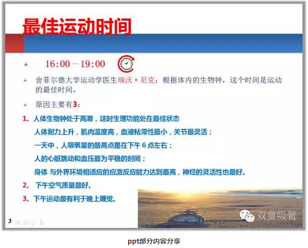 首先是朱主任給我們分享《我們應(yīng)該知道的生活、運(yùn)動(dòng)和傷病常識(shí)》課程,大家是不是都覺得清晨運(yùn)動(dòng)是很好的健身方式,其實(shí)清晨是不宜運(yùn)動(dòng)的,這時(shí)候人的身體狀態(tài)最差,最佳的運(yùn)動(dòng)時(shí)間應(yīng)該是16:00—19:00。在日常生活中,大家是不是都存在這樣的誤區(qū)呢?