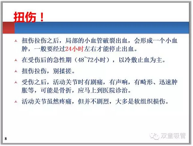 在運(yùn)動(dòng)過程中,我們經(jīng)常會(huì)出現(xiàn)扭傷,外傷出血,骨折等狀況。遇到這些問題時(shí),我們又該怎么辦呢?妞就把PPT干貨放上來(lái)和大家共享吧!