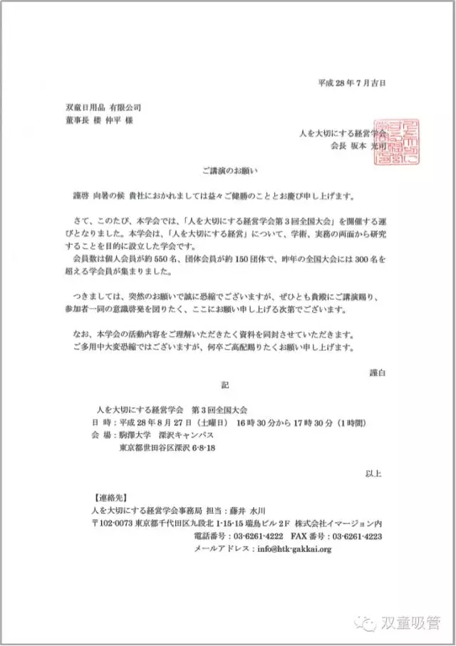接到日本方面的書面邀請后,樓總非常重視這次大會的演講分享,親自擬題并撰寫演講的PPT課件,由于日本主辦方對時間的把控十分緊湊,要求整個演講的時間必須做到分分鐘準確,而要在非常準確的時間里整體呈現(xiàn)“雙童”的人本經(jīng)營的邏輯本身不是一件容易的事情,通過長達一個多月構思和編輯,多次與主辦方日文翻譯之間的溝通和交流,最終樓總花費一周時間,三易其稿,一次次通過嚴密構思將演講課件做到分毫不差。