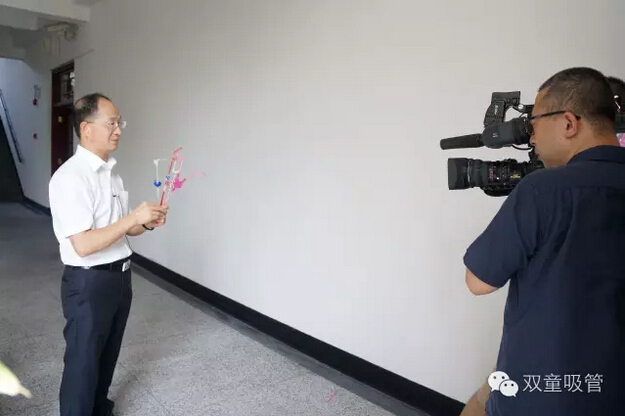 論壇還未開(kāi)始,當(dāng)家人樓總卻一點(diǎn)都不得空,為啥?因?yàn)樯虾5谝回?cái)經(jīng)頻道的新聞?dòng)浾咭渤弥@會(huì)功夫,要求他做采訪(fǎng)呢!當(dāng)家人樓總也坦言此次來(lái)參加中日科技論壇也是抱著學(xué)習(xí)的心態(tài)來(lái)相互交流,促進(jìn)企業(yè)提升的???,還拿著我們的吸管又做了一回模特呢!