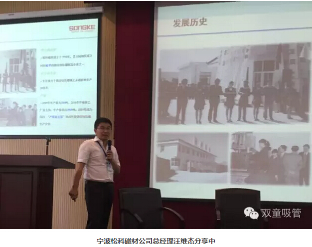 接下來(lái),專(zhuān)注于以磁鐵石產(chǎn)品為切口,打造電動(dòng)車(chē)、空調(diào)、電梯的生態(tài)圈,為客戶(hù)提供極致新材器的寧波松科磁材有限公司總經(jīng)理汪維杰,作了《專(zhuān)注于新能源領(lǐng)域用磁鐵的升級(jí)之路》的演講。專(zhuān)門(mén)生產(chǎn)汽車(chē)用過(guò)濾紙的典型的小巨人型企業(yè)、海水淡化用濾材市場(chǎng)占有率位居世界第一的阿波制紙上海有限公司總經(jīng)理東俊二,作了《活躍于產(chǎn)業(yè)功能領(lǐng)域的阿波制紙的今昔》的演講。