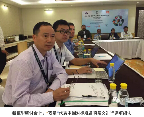 2015年10月6日,ISO TC61國際標準化組織年會在印度新德里召開,作為最后一次國際標準起草工作的定稿工作,“雙童”代表中國派出了強大的六人技術(shù)代表團。經(jīng)過幾天緊張的討論,“雙童”會同各參與主席國對《聚丙烯飲用吸管規(guī)范》送審稿的各項條文進行最終的程序性確認,在參與各國代表一致同意下形成了《聚丙烯飲用吸管規(guī)范》ISO國際標準報批稿,提交給瑞士日內(nèi)瓦的ISO國際標準化組織最終審定。
