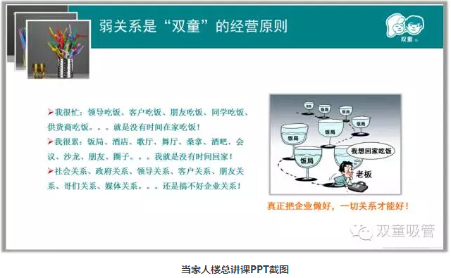在現(xiàn)代社會(huì)中,不少人把企業(yè)經(jīng)營(yíng)管理與人情社交關(guān)系掛上鉤,認(rèn)為”朋友多好辦事“。而當(dāng)家人樓總卻一直認(rèn)為,朋友多并不一定好辦事,有時(shí)候甚至?xí)璧K你的發(fā)展!這話從何說(shuō)起呢?接下來(lái)吸管妞就向大家詳細(xì)闡釋一下當(dāng)家人樓總在經(jīng)營(yíng)“雙童”過(guò)程中一直堅(jiān)守的“企業(yè)強(qiáng)弱關(guān)系”理念吧!