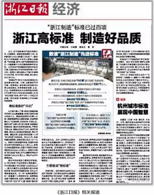 2014年底,浙江在全國(guó)率先以標(biāo)準(zhǔn)和認(rèn)證為手段打造首個(gè)區(qū)域性公共品牌——“浙江制造”品牌。“浙江制造”標(biāo)準(zhǔn)比國(guó)家及行業(yè)標(biāo)準(zhǔn)要求要高,基本達(dá)到國(guó)際先進(jìn)、國(guó)內(nèi)一流水平。通過(guò)制定先進(jìn)標(biāo)準(zhǔn),越來(lái)越多的企業(yè)占領(lǐng)標(biāo)準(zhǔn)高地,獲得更多的市場(chǎng)話(huà)語(yǔ)權(quán)。近日,《浙江日?qǐng)?bào)》也發(fā)布了一篇《浙江高標(biāo)準(zhǔn),制造好品質(zhì)》的報(bào)道。