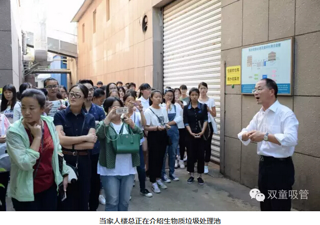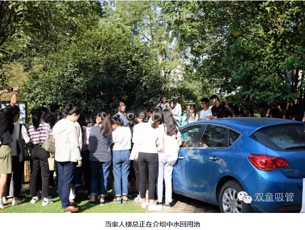 一進(jìn)門,學(xué)生們就提出要好好逛逛我們的花園式工廠。這不,當(dāng)家人樓總立即帶大家看起了我們的節(jié)能降耗設(shè)施。當(dāng)家人向?qū)W生們?cè)敱M地講述了我們的中水回用系統(tǒng)、雨水收集系統(tǒng)、垃圾分類系統(tǒng)等各個(gè)設(shè)施的運(yùn)行原理,同學(xué)們對(duì)這樣生態(tài)環(huán)保的做法都贊不絕口呢!