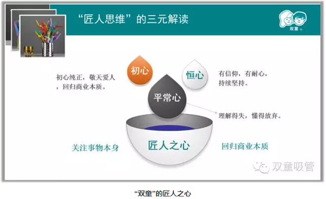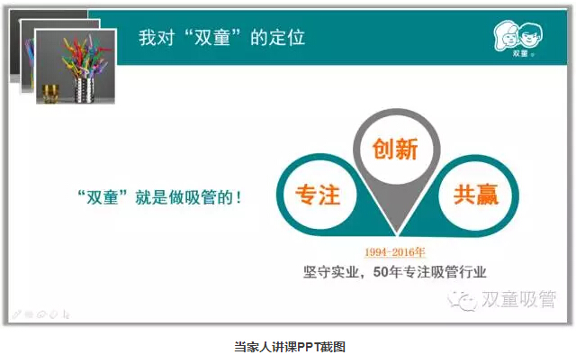 首先,當(dāng)家人樓總分享了自己30多年的創(chuàng)業(yè)經(jīng)歷,在不斷失敗的教訓(xùn)中,他選擇了把一根吸管做精、做細!通過二十多年積累,“雙童”初步形成了專注經(jīng)營、創(chuàng)新進取、綠色低碳、和諧共贏和精細化管理的發(fā)展理念,“雙童”也發(fā)展的越來越好!而這些都離不開“匠心”。