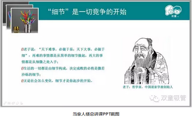 老子說(shuō):“天下難事,必做于易;天下大事,必做于細(xì)”。再難的事情都是從簡(jiǎn)單的細(xì)節(jié)做起,再大的事情都是從細(xì)微之處入手;無(wú)論社會(huì)怎么變化,我們都應(yīng)該腳踏實(shí)地,做好細(xì)節(jié)工作!