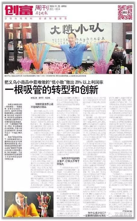 樓仲平做的,是義烏上百萬個(gè)小商品中看起來最難做,也最不值得去做的邊緣產(chǎn)業(yè)——吸管。一根普通吸管售價(jià)幾厘錢,利潤(rùn)只有幾毫,很難建品牌,連廣告都沒法打。在批發(fā)市場(chǎng),最便宜的吸管13元一箱,一箱2500根,每賣出100根吸管才掙幾分錢。而樓仲平最開始,就是在義烏的小商品城里擺攤賣吸管起步的。