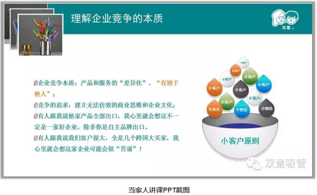 “一切都要回歸商業(yè)本質(zhì)。”這是樓仲平在濟(jì)南的講課中一直重復(fù)的一句話。講到他創(chuàng)立“小客戶原則”的初衷,樓仲平說,像大客戶,半年三個(gè)月,甚至一個(gè)月來一次全國(guó)招標(biāo)、全球招標(biāo),不斷地壓價(jià),把企業(yè)的利潤(rùn)壓得非常低,對(duì)產(chǎn)品的要求還高;原材料稍微波動(dòng)一下,企業(yè)就會(huì)虧損;而且風(fēng)險(xiǎn)極高,一旦其中一家不合作了,整個(gè)公司的銷售都會(huì)受到影響。
