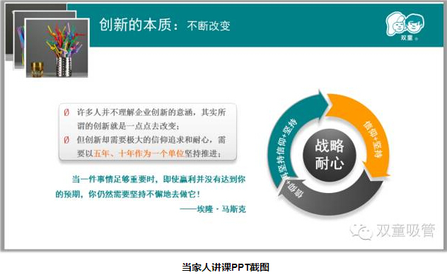 “企業(yè)要追求有效創(chuàng)新。”樓仲平說,“雙童”不需要用機(jī)器人做吸管,“雙童”只需要保持高度的個(gè)性化、高度的差異化,產(chǎn)品就能有競(jìng)爭(zhēng)力。