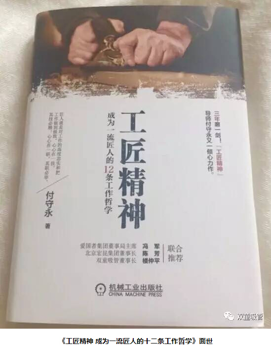在國(guó)內(nèi),付守永先生是著名的“工匠精神第一人”,他不僅寫就了《工匠精神》、《路演大師》等暢銷著作,且多年來一直致力于傳播工匠精神,為企業(yè)界帶來了實(shí)實(shí)在在的經(jīng)營(yíng)指導(dǎo)和管理方略。近日,付守永先生的新書《工匠精神 成為一流匠人的十二條工作哲學(xué)》已經(jīng)面世!而在此書的開頭,就是付守永先生邀請(qǐng)當(dāng)家人樓總為此書寫的序文!看來付守永先生對(duì)“雙童”的”工匠精神“也相當(dāng)認(rèn)可。想看看當(dāng)家人樓總是如何詮釋”雙童“匠心的嗎?下面妞帶大家來看看!