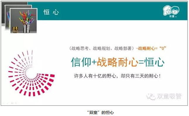 從一根簡(jiǎn)單的不能再簡(jiǎn)單的吸管,到今天“雙童”琳瑯滿目的創(chuàng)意吸管,“雙童”的吸管已不再是簡(jiǎn)單喝飲料了,幾厘錢的吸管逐漸地變成了幾毛錢、幾塊錢,甚至于我們的吸管都可以賣到十塊錢、八塊錢一支了。而取得這樣的創(chuàng)新突破,絕非是一朝一夕的短、平、快,而是以“十年為一個(gè)單位”的持續(xù)積累而一點(diǎn)點(diǎn)的突破。