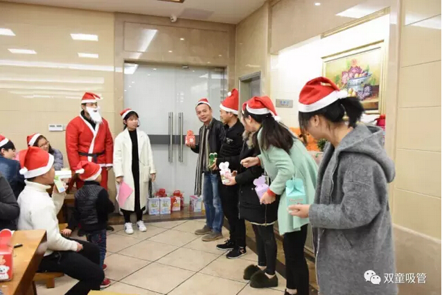 啥?圣誕老人來(lái)啦?就在平安夜,我們“雙童”員工餐廳迎來(lái)了一場(chǎng)別開(kāi)生面且溫暖十足的圣誕晚會(huì)暨12月份員工生日會(huì)!為什么說(shuō)是別開(kāi)生面?因?yàn)檫@是一場(chǎng)員工生日會(huì)與圣誕晚會(huì)合在一起舉辦的超規(guī)格晚會(huì),員工跟圣誕老人一起慶祝生日,夠不夠別開(kāi)生面?
