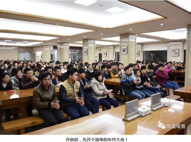 又到年底,我們“雙童”也要放假啦!在放假前,我們準(zhǔn)備了豐盛的年終大聚餐!在年底員工聚餐前,當(dāng)然要先開(kāi)個(gè)員工年終大會(huì),好好表彰一下過(guò)去一年來(lái)大家的辛勤努力!這不,下午四點(diǎn),我們舉行了春節(jié)前的最后一次集體員工大會(huì)。