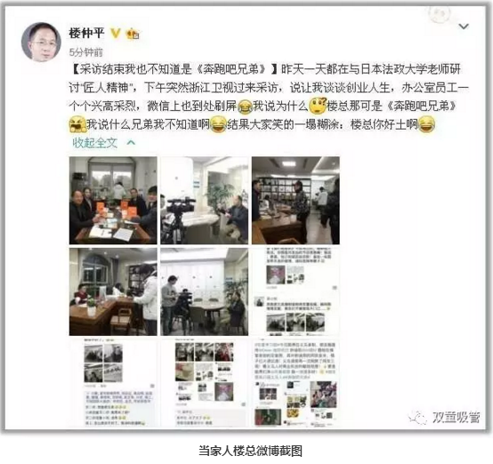據(jù)悉此次《奔跑吧》節(jié)目組一共采訪了三位最具代表義烏雞毛換糖的本土企業(yè)家,樓總是其中一個(gè)呢!四月中旬《奔跑吧》的第二期節(jié)目會(huì)在浙江衛(wèi)視播出,大家可要及時(shí)觀看哦,說(shuō)不定跑男們跑著跑著就出現(xiàn)我們的當(dāng)家人樓總啦!