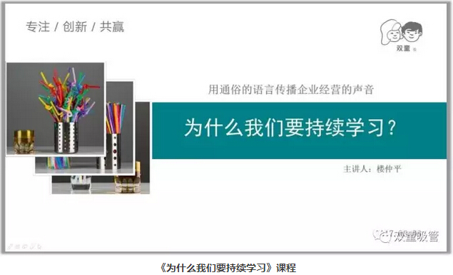 原本此次課程是由當(dāng)家人樓總和大家分享《為什么我們要持續(xù)學(xué)習(xí)》課程,但講師卻換成了吸管妞!其實(shí)是因?yàn)槲覀冊(cè)诓粩嗵剿鲗W(xué)習(xí)會(huì)的開展方式,看看老板不在,童鞋們是不是更放松呢!