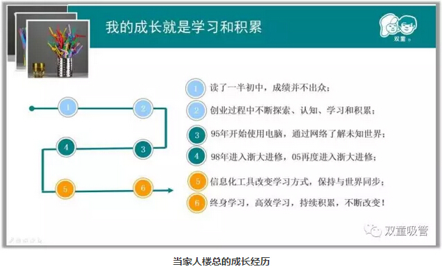 接下來,吸管妞也通過當(dāng)家人樓總的成長(zhǎng)之路來鼓勵(lì)大家,起點(diǎn)低沒關(guān)系,重要的是你要敢于奮斗,勤于學(xué)習(xí)!通過不同的角度來詮釋樓總的學(xué)習(xí)成長(zhǎng)之路,相信對(duì)同學(xué)們會(huì)有不一樣的啟迪!