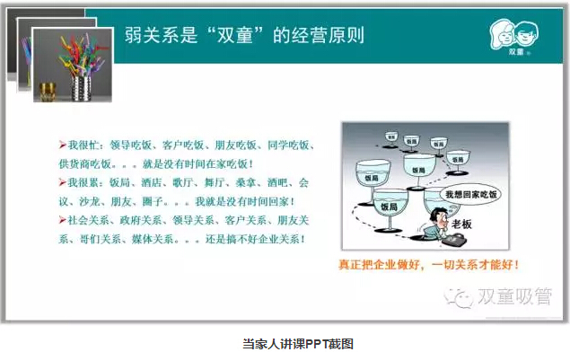 當家人樓總十分注重關系哲學,畢竟一個人的能力是有限的,他能發(fā)展的強關系范圍也就只有十來個人,在企業(yè)經(jīng)營中,十多個人的作用并不大!在企業(yè)內部要弱化血緣關系,強化規(guī)則關系;弱化人情關系,強化契約關系;弱化個人關系,強化團隊關系;弱化社交關系,強化社會關系。