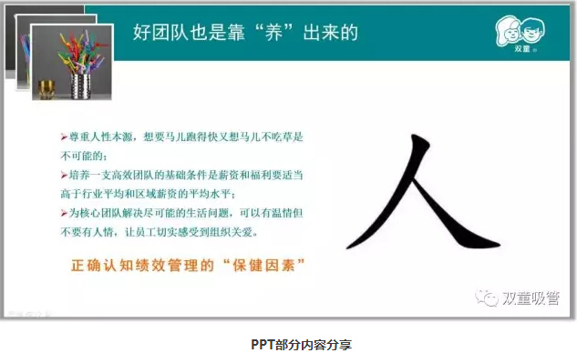 經(jīng)理人老化更多所指是心理層面的“老化”,而人的心理年齡是可以通過推動、學習、認知而改變的,領(lǐng)導者的責任就是要推動經(jīng)理人“逆生長”。“雙童”在每周一和周三的19-21點,舉辦全體員工的學習會,確保所有員工每月有累計8小時的學習和培訓;將員工的學習與職業(yè)升遷掛鉤,讓每個員工不斷學習和認知到新事物。