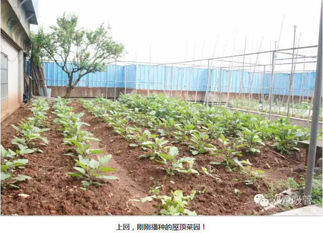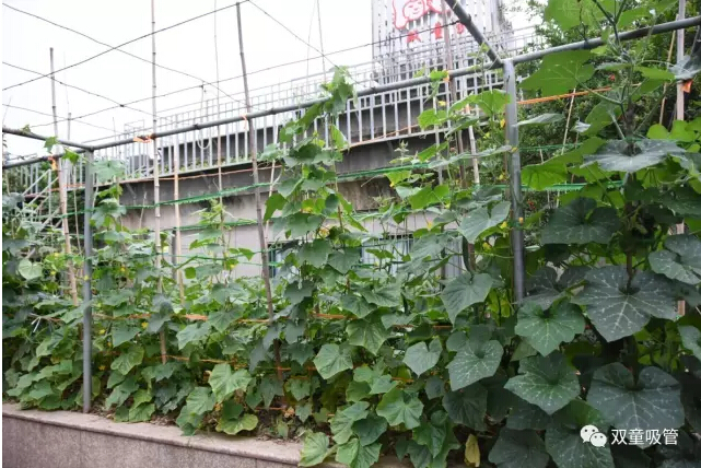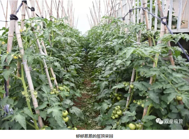 很多忙碌的上班族都?jí)粝胱约河卸€閑田,田里有各式新鮮的蔬菜水果,綠油油的一片美好,早晨起來吹吹晨風(fēng),摘點(diǎn)果子閑步漫游,好不愜意!在“雙童”就有這么一個(gè)神奇的存在——屋頂菜園。