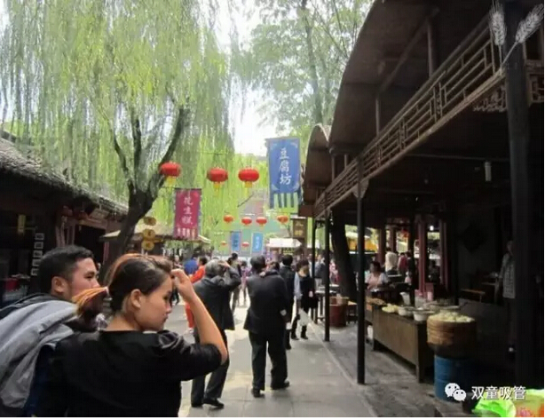 走進(jìn)景區(qū)內(nèi),一派市井熱鬧的景象!街衢縱橫,茶樓酒肆、藝場(chǎng)教坊林立,處處管弦笙歌。傳統(tǒng)賣藝耍大刀的當(dāng)街而舞、皮影戲、曲藝、 “繡球招親”、鬼屋,各類項(xiàng)目真是應(yīng)接不暇,“雙童”人都要high翻天啦!