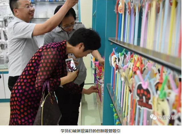 移步樣品房,大家都被琳瑯滿目的各類吸管所吸引,尤其是各類功能情趣的創(chuàng)新吸管,它顛覆了大家腦海里幾分幾厘的普通吸管,而是轉(zhuǎn)變?yōu)閹讐K錢一支的高端產(chǎn)品,更是讓每個人都嘖嘖稱奇,贊嘆“雙童”的創(chuàng)新力之強!