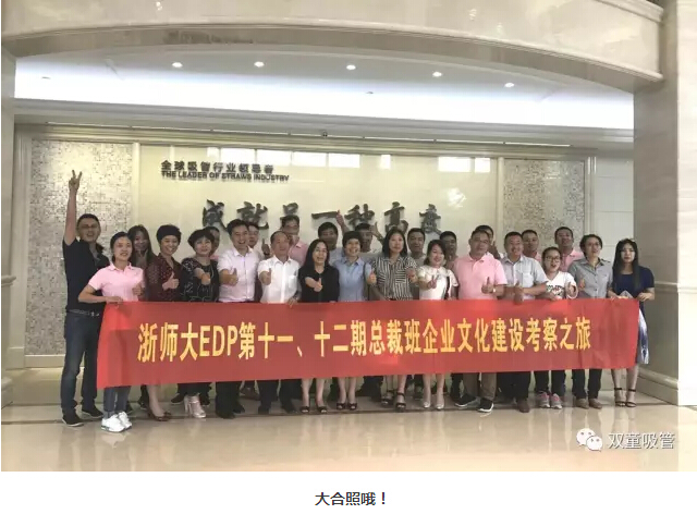 近日,浙江師范大學(xué)王水嫩教授帶領(lǐng)浙師大EDP總裁班的學(xué)員們到“雙童”參觀交流,了解“雙童”的企業(yè)文化。