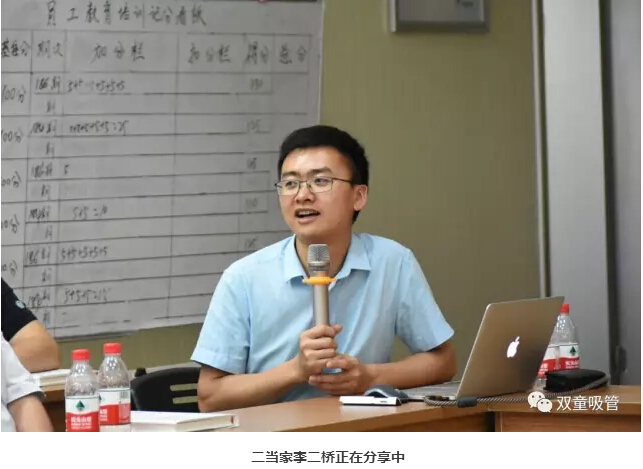 2003年11月,李二橋被任命為吸管車間班組長,負(fù)責(zé)吸管車間六七十號員工的生產(chǎn)安排和質(zhì)量控制。由于工作出色,2005年8月,剛滿20歲的李二橋就進(jìn)入“雙童”中層行列,被任命為品管部主任,開始承擔(dān)起標(biāo)準(zhǔn)化制定的工作。
