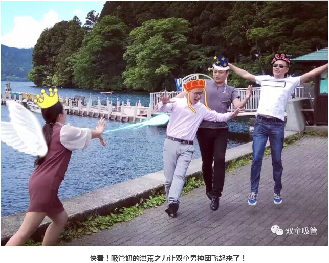 離開大涌谷,我們也順路去了著名的火山湖——蘆之湖。蘆之湖大約形成于三千年前,面積有7平方公里,最深處達(dá)45米,是神奈川縣內(nèi)面積最大的湖泊。在晴天時(shí)泛舟湖上,還能看到終年積雪的富士山!我們也在湖邊留下了創(chuàng)意合影,吸管妞的洪荒之力把“雙童”的男神團(tuán)都嚇退啦,發(fā)到朋友圈也獲得了一大波的好友點(diǎn)贊哦!