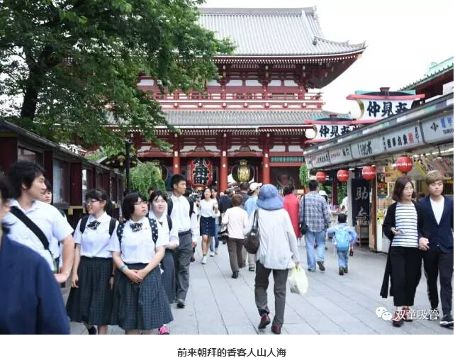 為了了解日本民族文化,我們自然也要去一次東京都內(nèi)最古老的寺廟——淺草寺。據(jù)導(dǎo)游介紹,在推古天皇三十六年,有兩個(gè)漁民在宮戶川捕魚,撈起了一座高5.5厘米的金觀音像,附近人家就集資修建了一座廟宇供奉這尊佛像,這就是淺草寺。到江戶初期,德川家康重建淺草寺,使它變成一座大群寺院,并成為附近江戶市民的游樂之地。一直至今,淺草寺香火繁盛,簽很靈驗(yàn)。