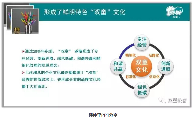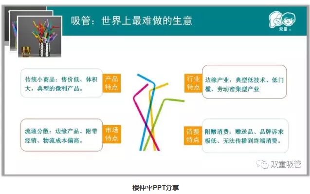 第三階段:差異化呈現(xiàn)階段。很多人會很好奇,“雙童”作為一家吸管制造企業(yè),為什么會吸引大量的社會和媒體關注呢?當家人樓總和大家坦白:其實,這就是我們一直以來塑造差異化亮點,并做到“人無我有,人有我先”,用“講故事”的形式把“雙童”品牌傳播到大江南北的結果!當然,這之前有一個前提:一定要先把企業(yè)做好!