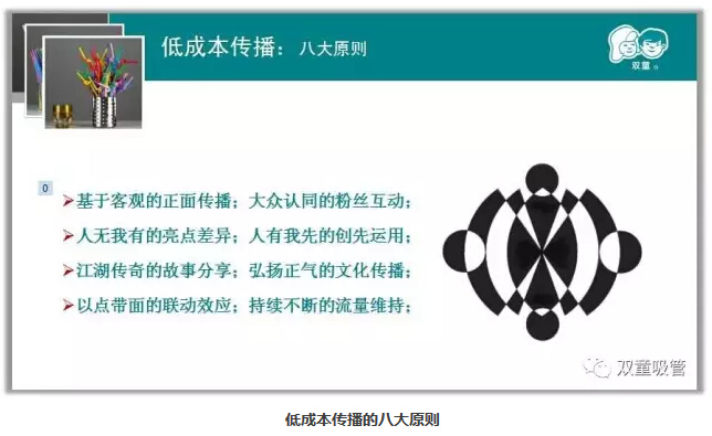 在課程的最后,“雙童”樓仲平也和在座的企業(yè)主們分享低成本傳播的八大原則!