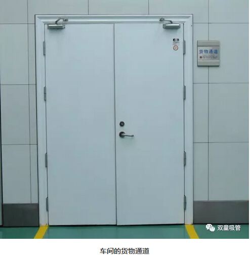 在車間大門前,人貨入口處分離通道有嚴(yán)格的區(qū)域劃分。