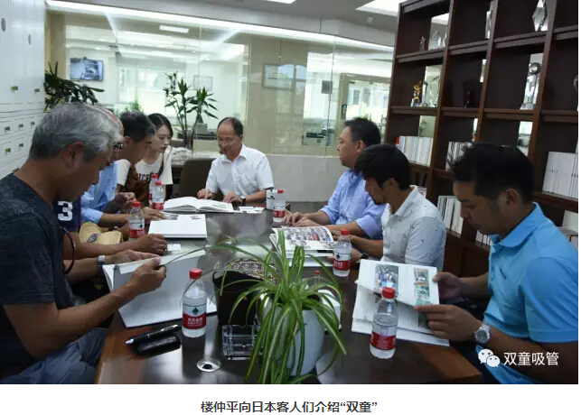 今年以來,陸續(xù)不斷的日本客人也慕名到“雙童”參觀交流。7月28日,日本議會(huì)議員杉野直樹先生帶團(tuán)前來參訪“雙童”,“雙童”樓仲平也熱情接待了他們!樓仲平首先和日本客人們介紹了自己和日本的淵源。早在2000年,樓仲平就隨日本友人桑原道昭先生到日本各地拜訪客戶,參觀日本企業(yè),探究日本“工匠精神”,并認(rèn)知到了“利他經(jīng)營(yíng)”模式。