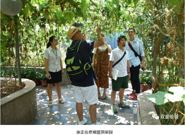 日本客人們也在參觀過程中,實(shí)地感受了“雙童”綠色生態(tài)的廠區(qū)環(huán)境。尤其是到了九樓空中菜園后,大家對(duì)滿園的瓜果蔬菜非常感興趣,認(rèn)為即使在日本,也很少有這么好的空中菜園!
