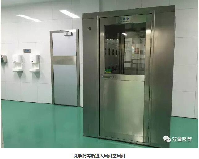 5、完成洗手消毒之后,要進(jìn)入風(fēng)淋室進(jìn)行風(fēng)淋除塵。