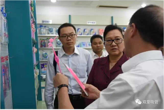 接著,大家來到了樣品房,被琳瑯滿目的各類吸管所吸引。“雙童”樓仲平向部長先生詳細介紹了我們近些年研發(fā)的一系列創(chuàng)新吸管,并說明這些吸管都是申請了專利證書。同時,“雙童”還是浙江省唯一由單一企業(yè)承擔“行業(yè)標準、國家標準和ISO國際標準”的中小企業(yè)。部長先生再次被“雙童”的工匠精神所震撼!她表示,她從來沒有想過一根吸管竟然還能有如此多的創(chuàng)意。部長先生高興地說:“我真是太喜歡‘雙童’了!”