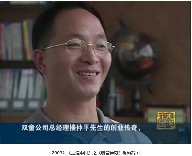 2006年,在《走遍中國(guó)》—《吸管傳奇》拍攝過(guò)程中,本來(lái)攝制組一開(kāi)始只打算把焦點(diǎn)全部放在“雙童”一家企業(yè)上,但拍著拍著,“雙童”樓仲平的一個(gè)好想法油然而生:全國(guó)最大的幾家吸管制造企業(yè)都在義烏,為什么不拍一拍義烏的吸管行業(yè)呢?于是,在樓仲平的推薦下,攝制組又接連采訪了其它兩家企業(yè),整部片子以吸管行業(yè)發(fā)展為主軸加以貫穿,相比之前更為豐富飽滿。