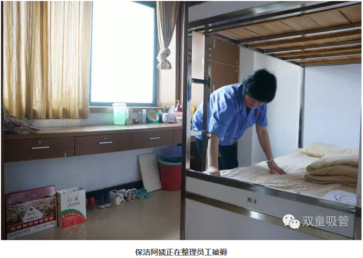當(dāng)然,干凈整潔的員工寢室也少不了細(xì)心專業(yè)的維護(hù)團(tuán)隊(duì)。2005年開(kāi)始,“雙童”就組建了物業(yè)團(tuán)隊(duì)服務(wù)員工,每天為員工提供全方位的生活和后勤服務(wù)保障!