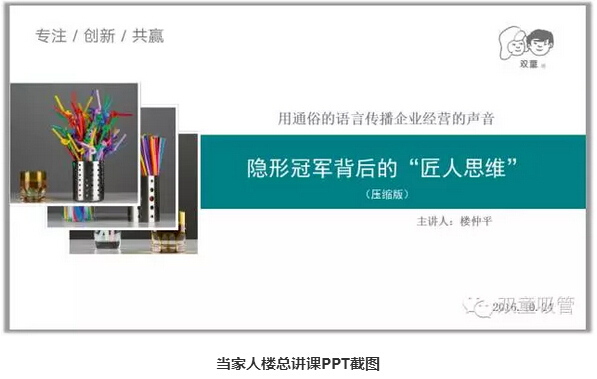 樓仲平:不要把創(chuàng)新說得高高在上,創(chuàng)新應(yīng)該是非常平民化的事情。我們雙童把創(chuàng)新看得非常簡(jiǎn)單,唯有簡(jiǎn)單才可以讓普通人去做,才能全民參與,我們?nèi)巳硕际莿?chuàng)新者。其實(shí),創(chuàng)新也好,工匠精神也好,本質(zhì)上緊密相關(guān)。