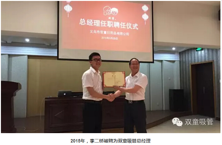 全球飲用吸管行業(yè)領導者“雙童吸管”的創(chuàng)始人、董事長樓仲平,也談了這個問題,1994年創(chuàng)辦的義烏市雙童日用品有限公司,發(fā)展道路可圈可點,企業(yè)創(chuàng)新性與威望同行業(yè)里應是世界典范,更可貴的是,幾年前,樓仲平就成功地卸下總經理職務,有戰(zhàn)略眼光、有博大胸襟,如今,一切都按他設計的預期的風向順利地進行著,確實是個有智慧的企業(yè)家。