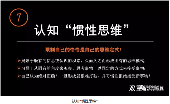 樓仲平通過“盲人買剪刀”及“吵架”兩個(gè)小案例和大家分享了認(rèn)知“慣性思維”:“我們常常會(huì)局限于既有的信息或認(rèn)識(shí)的積累,習(xí)慣于從固有的角度來觀察、思考事物。這種思維一旦形成就很難打破,并習(xí)慣性拒絕接受新事物,久而久之形成固有的思維模式!所以,很多時(shí)候限制自己的恰恰是自己的思維定式,我們要跳出自己的思維定式!”