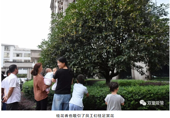那些葉間散落的小黃點,簇擁在一起,發(fā)出陣陣幽香。而“雙童”員工們在茶余飯后總愛聚在桂花樹下賞賞綠葉、聞聞花香,置身陶醉于桂花的芳香之中,讓自己在緊張而繁忙的工作之余舒緩壓力,減少疲憊,給自己一種好心情!