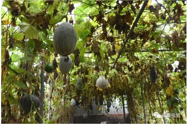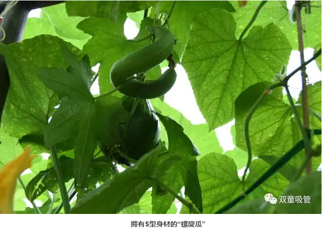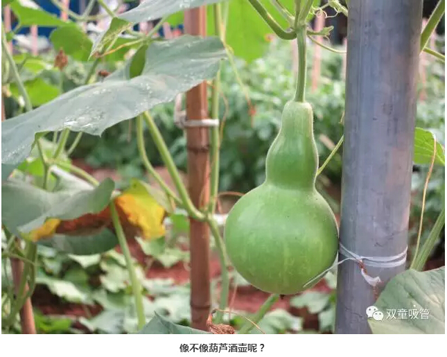 接下來這個(gè)瓜可是堪稱藝術(shù)品呢!一般的葫蘆瓜都是直筒的,而“雙童”菜園里的葫蘆瓜居然長成了一個(gè)名副其實(shí)的葫蘆瓜。吸管君直言,把瓜仁挖了,都可以當(dāng)酒壺啦!