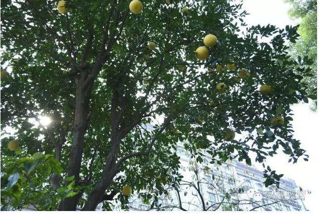 已經(jīng)轉(zhuǎn)黃的大柚子高高低低的掛滿了枝頭,和青綠的葉子應(yīng)和著,煞是好看呢!從樹下往上看,像不像星星掛滿天的趕腳?吸管妞還發(fā)現(xiàn),有幾個(gè)柚子長得非常的低,真的可以用“唾手可得”來形容,可是……竟然沒有吃貨來摘?這是怎么回事呢?