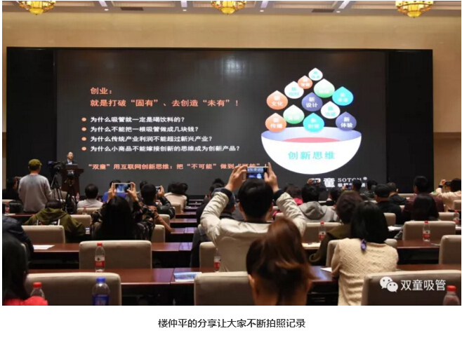 “雙童”樓仲平的演講主題是《一根吸管”的創(chuàng)業(yè)觀》,精彩分享引起了在場創(chuàng)業(yè)者們的高度認(rèn)同。下面,吸管妞就和大家分享精彩的課程內(nèi)容吧!