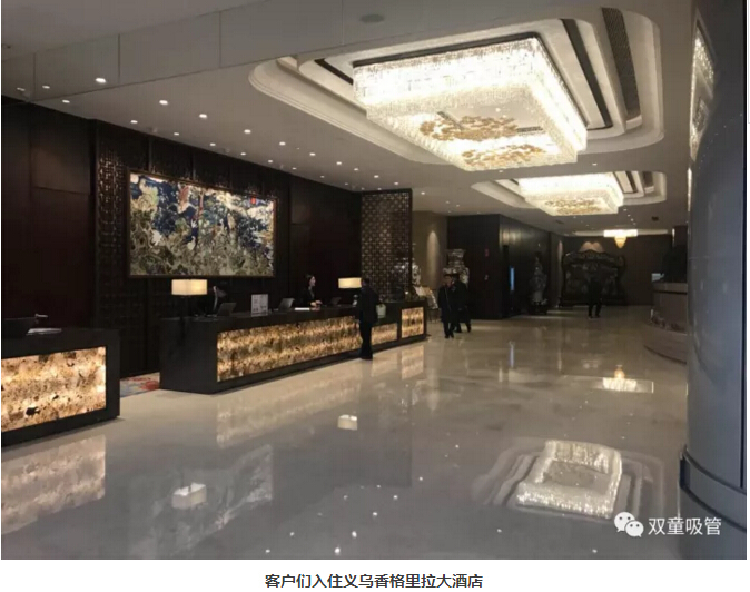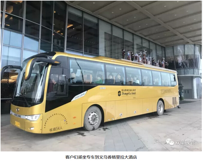11月17日,參加客戶文化節(jié)的客戶陸陸續(xù)續(xù)的到達了義烏。為了歡迎客戶們的到來,“雙童”早早就訂好了義烏最好的五星級酒店——義烏香格里拉大酒店,并預定了大巴車專程接送客戶,讓客戶們在最好的環(huán)境中休息。