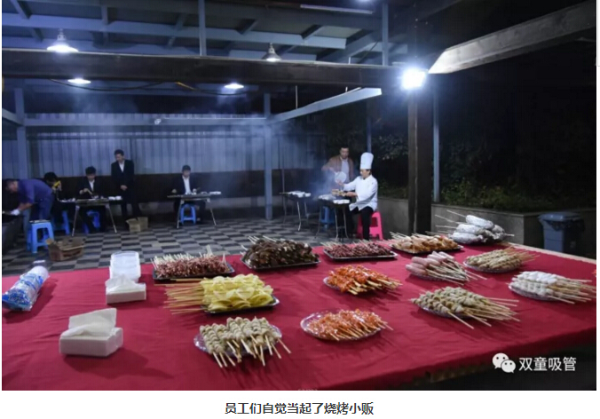 在自助晚餐后,大家開始舉著酒杯自由走動,溝通起來也更加方便。通過燒烤晚宴這樣輕松愉快的交流方式,大家打開心扉,不僅讓客戶們和自己平時合作最親密的業(yè)務員們溝通交流,而且在輕松的氛圍當中和管理層深入溝通交流,近一步了解“雙童”的經(jīng)營模式和文化理念。