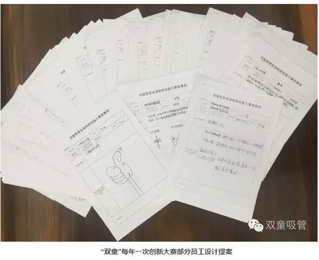除此之外,“雙童”動員內(nèi)部全體員工進行思維創(chuàng)新,在公司舉行吸管創(chuàng)新大賽。在大賽中,員工們提交的作品在外觀上的創(chuàng)新、功能及使用方式創(chuàng)新都十分吸人眼球,也進一步推動了企業(yè)的創(chuàng)新工作。另一方面,在內(nèi)部協(xié)作取得一定成果后,“雙童”陸續(xù)與浙江師范大學(xué)、北京服裝大學(xué)、中國塑料工業(yè)研究所等機構(gòu)建立長期合作,從而逐步了形成規(guī)范的創(chuàng)意引導(dǎo)、征集、篩選、評價、激勵、開發(fā)和商業(yè)推廣等創(chuàng)新工作機制,逐漸形成了規(guī)范的研發(fā)性低成本創(chuàng)新之路!